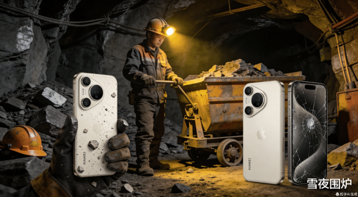 用户实测:云南矿企员工携带Mate80 Pro Max井下作业,机身经碎石刮擦仅留浅痕,而iPhone 17 Pro Max玻璃后盖已大面积碎裂。